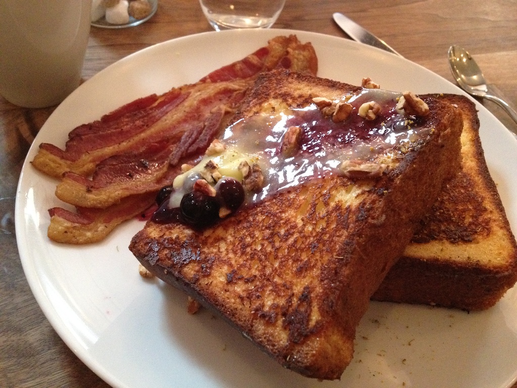 French Toast with blueberry marmalade, lemon curd, pecans, and bacon at FarmShop in Brentwood Country Mart. As an added bonus, the market has a lot of our favorites from up north, like Rustic Bakery Cheese Coins, Sonoma Syrup Company simple syrups in even the harder-to-find flavors like lavender, and Cowgirl Creamery cheeses, even Devil's Gulch! Yum!